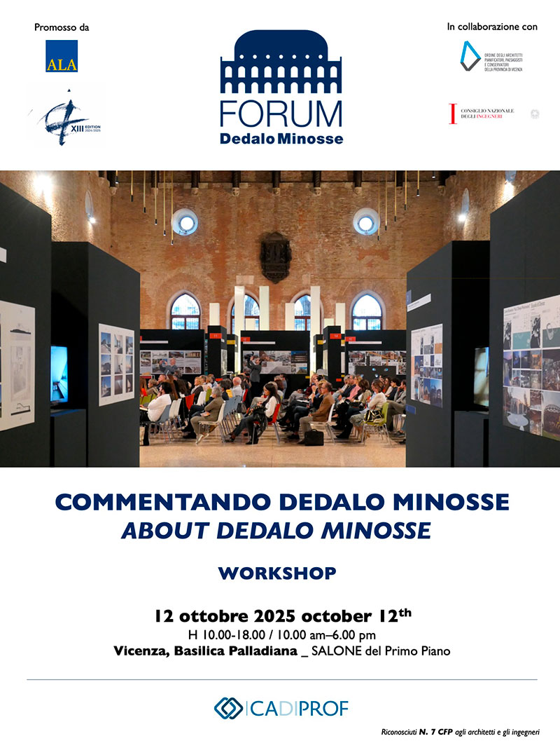 A great Forum in the ancient forum of Vicenza - around ten events over the course of three weeks: Designers and Clients, Contractors, Journalists, Engineers, Institutions, and other Experts will engage in seminars, conferences, and interdisciplinary workshops open to the wider public, thereby activating the civic heart of the City, which will resonate with the voices of professionals, enthusiasts, schools, and associations.