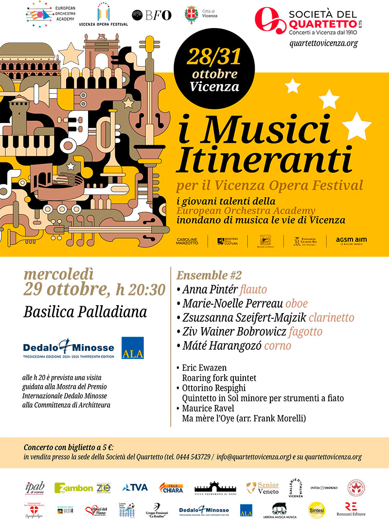 Dedalo Minosse ospita, in Basilica Palladiana, la Società del Quartetto con il quintetto di fiati della European Orchestra Academy, composto da talentuosi musicisti selezionati da Iván Fischer.