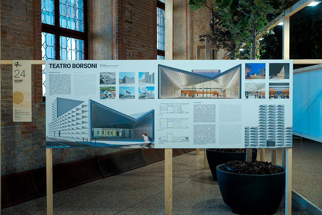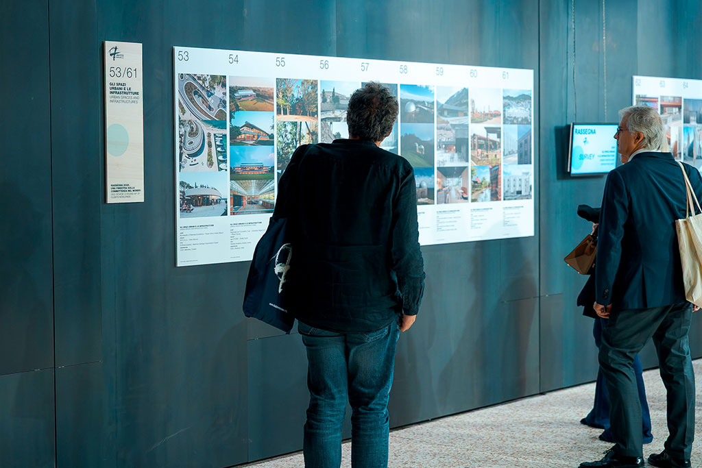 Una Rassegna di 70 progetti provenienti dall'Italia e da tutto il mondo. Fotografie, testi, elaborati, plastici e video raccontano i 5 Premi, gli 8 Premi Speciali e le 11 Segnalazioni della Giuria oltre ad altri 45 progetti pubblicati nel catalogo.